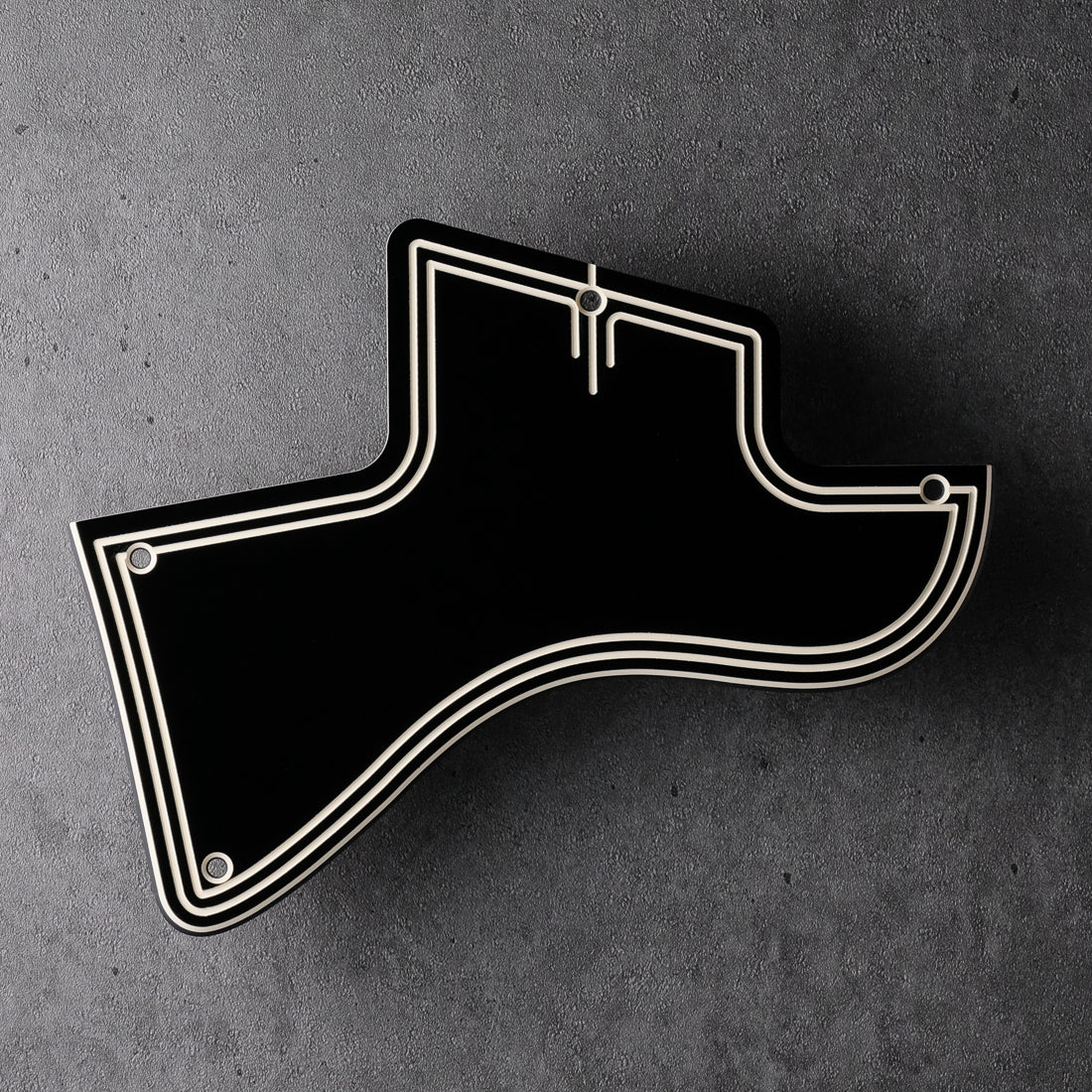SG '61 Les Paul Standard pickguard cut by CNC for a precise fit, engraved with our Streamline design on black/cream/black acrylic.