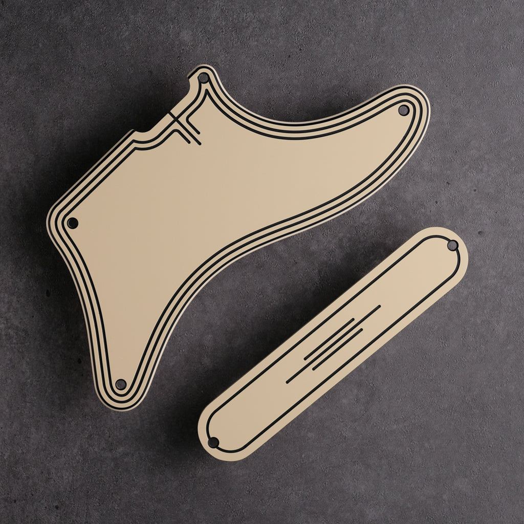 Cabronita pickguard and backplate, cut by CNC for a precise fit, engraved with our original Streamline design, in Black/White/Black acrylic.